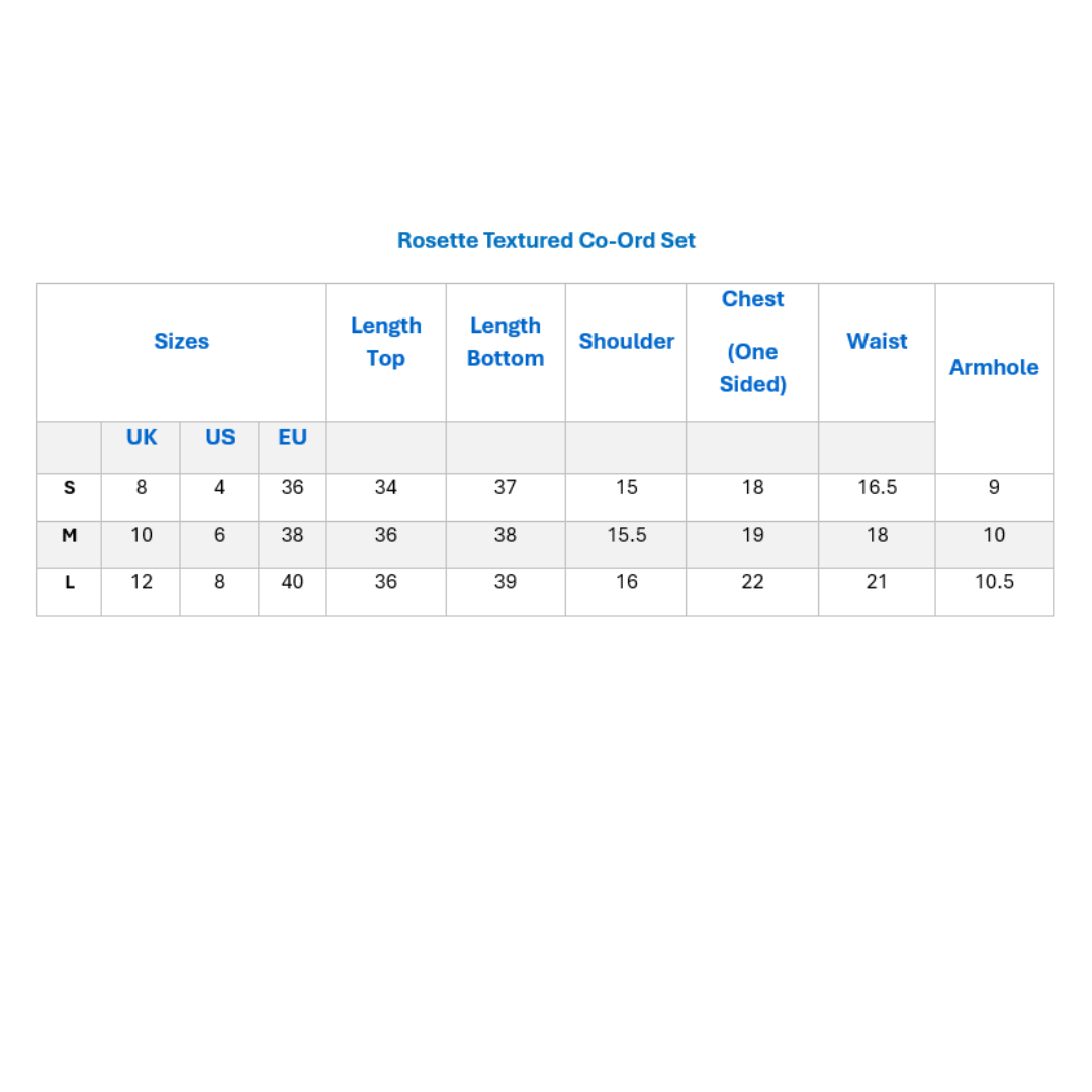 The Rosette Textured Co-Ord Set offers a graceful fusion of comfort and understated elegance, crafted from a lightweight textured fabric that drapes beautifully. The top is designed with a modest front placket, cuffed sleeves, and an adjustable drawstring waist, allowing clients to tailor the fit according to personal preference.